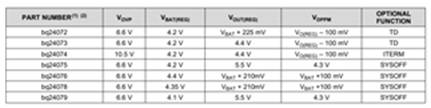 BQ2407X系列包含如下幾個芯片可供選擇: