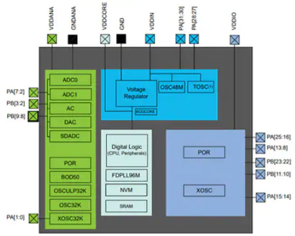 圖14:PIC32CM1216MC00048-I/U5B功率域概覽  (圖源:Microchip)
