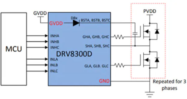 圖16:DRV8300NIPWR簡化原理圖  (圖源:TI)