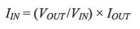 由于功耗降低,輸入功率必須等于傳遞至負(fù)載的功率減去所有 損耗。假定轉(zhuǎn)換十分有效,則少量的功率損失可在基本功耗計(jì) 算中省略不計(jì)。因此輸入電流可近似表示為: