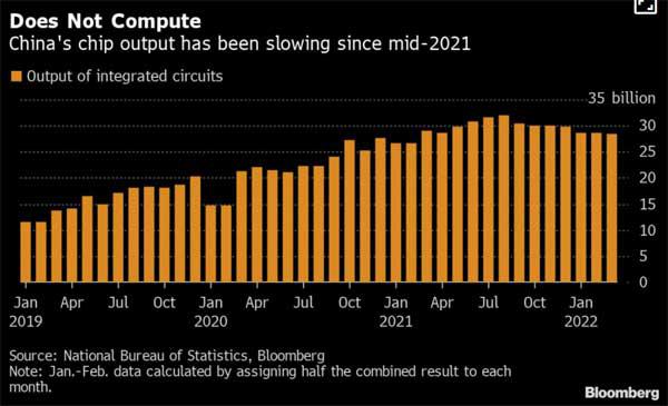 據(jù)彭博社報(bào)道,中國半導(dǎo)體季度產(chǎn)量自 2019 年初以來首次出現(xiàn)萎縮,主要原因是消費(fèi)電子產(chǎn)品需求疲軟以及包括上海在內(nèi)的地區(qū)因新冠疫情引發(fā)的封鎖中斷了產(chǎn)量。