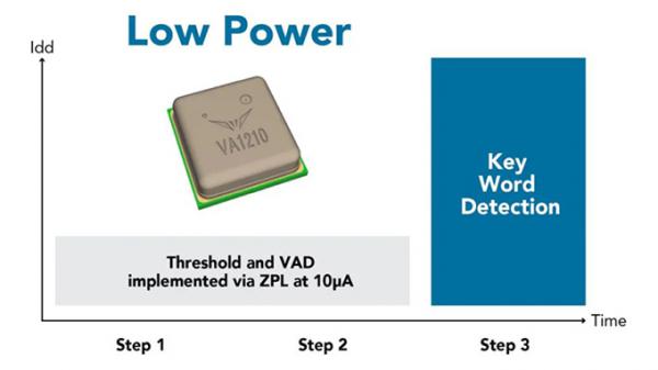 借助語(yǔ)音喚醒(WoV),VA1210可以通過(guò)骨傳導(dǎo)持續(xù)監(jiān)控TWS耳機(jī)佩戴者的語(yǔ)音活動(dòng),同時(shí)由于Vesper的專(zhuān)利“ZeroPower Sensing”技術(shù),該傳感器僅消耗10µA的電流。VA1210可以準(zhǔn)確檢測(cè)語(yǔ)音活動(dòng),并且僅在有語(yǔ)音時(shí)開(kāi)啟系統(tǒng)處理器。這使TWS耳機(jī)和其他系統(tǒng)設(shè)計(jì)人員可以大幅降低平均功耗。