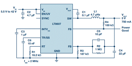 圖2. 基于LT8606/LT8607/LT8608的12 VIN至5