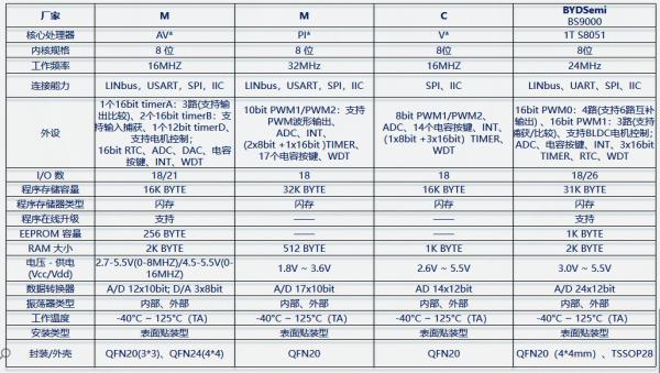 8位車規(guī)MCU資源對(duì)比