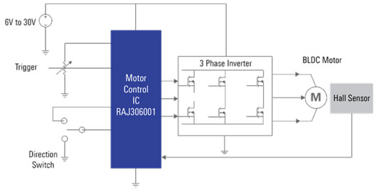 使用 RAJ306001 的 BLDC 電機(jī)電路