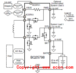 圖5. BQ25798應用框圖:單輸入源,備份模式和有FET
