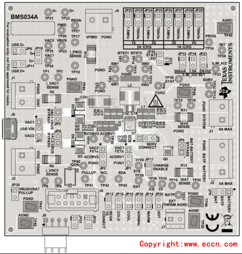 圖10.評估板BMS034A/B PCB設計圖:頂層