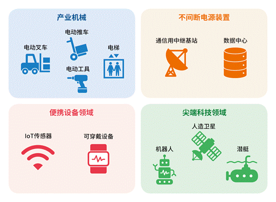 在產(chǎn)業(yè)領(lǐng)域,鋰離子電池被用于無線操縱機器人、無人機之類的機械,以及各種地方設(shè)置的IoT傳感器、潛艇和火箭等特殊載人工具,鋰離子電池被廣泛用于產(chǎn)業(yè)領(lǐng)域的各行各業(yè)。