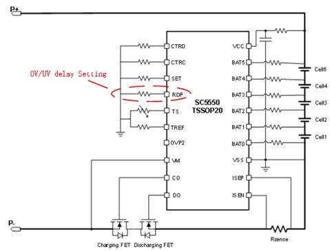 圖2. SC5550支持外部電阻調(diào)節(jié)OVP和UVP延時(shí)