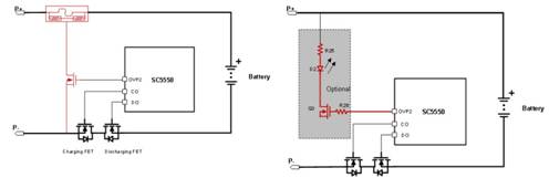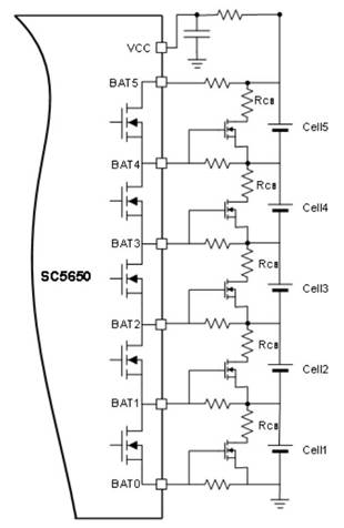 多串電池在使用中容易產(chǎn)生電芯不均衡問(wèn)題,影響電池的使用壽命。與SC5550 同系列的SC5650, 在支持SC5550的基礎(chǔ)上,集成了100mA 的均衡功能。如需更高均衡電流,也可通過(guò)外加MOSFET拓展外部均衡電路。
