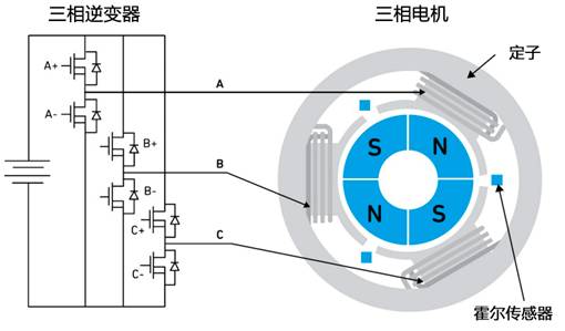 這個復雜的電路會提取轉子的位置信息,以電子方式對齊兩個磁場。對于三相 BLDC 電機,該模塊通常由微控制器和三相逆變器功率級組成,采用傳感器(如霍爾傳感器)來提取轉子的位置信息。增加這種電路確實會占用一些空間,并導致成本增加。然而,制造商也看到了擺脫束縛的好處,消費者也需要這些類型的電機解決方案。因此,越來越多的電動工具開始使用三相 BLDC 電機拓撲結構進行設計。