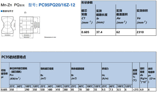 此方法適用于利用磁芯來設計電感的場景。磁芯參數(shù)包括磁路長度le,有效面積Ae等。磁芯的型號還決定了相應的磁材牌號,磁材對磁芯損耗,飽和磁通密度等做了相應規(guī)定。