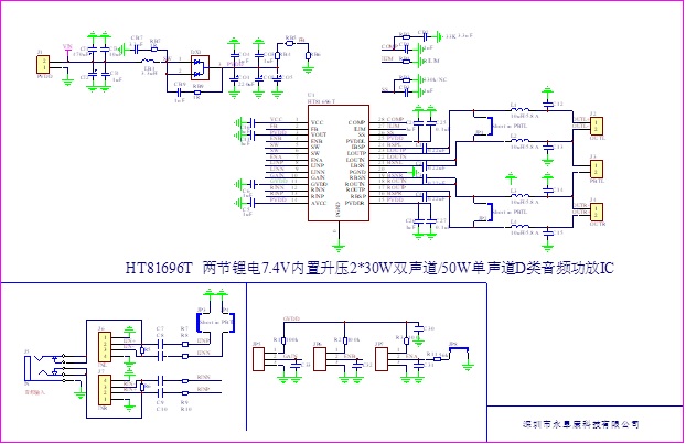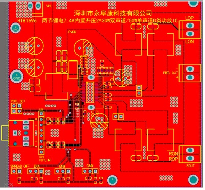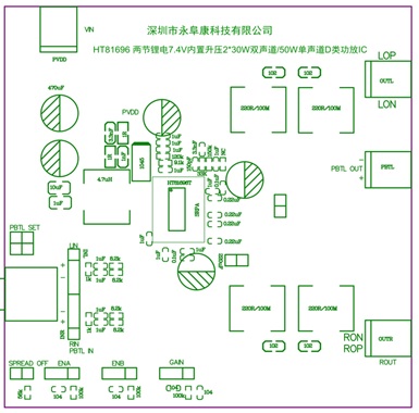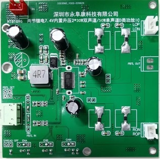 但是兩節(jié)18650鋰電串聯(lián)的輸出電壓是6V-8.4V,在電池直供的情況每個聲道只能提供7W/4歐的功率輸出,相比較鉛酸電池供電功率明顯偏小。如何在兩節(jié)鋰電供電提供超過20W/聲道的功率輸出?成為一直以來困擾電子工程師的主要難題。現(xiàn)階段主要采用的是升壓+功放芯片的解決方案,外圍元器件多、PCB設(shè)計(jì)復(fù)雜。深圳市永阜康科技有限公司總結(jié)市場應(yīng)用痛點(diǎn),現(xiàn)在大力推廣一顆2X30W雙聲道/50W單聲道D類音頻功放芯片-HT81696,可以廣泛應(yīng)用于廣場舞音箱、智能音箱、便攜式藍(lán)牙音響等產(chǎn)品領(lǐng)域,以其高效率大功率、應(yīng)用簡單、高性價比等優(yōu)點(diǎn),加速實(shí)現(xiàn)在戶外拉桿廣場舞音箱等領(lǐng)域、鋰電池替換鉛酸電池成為主流供電方式。