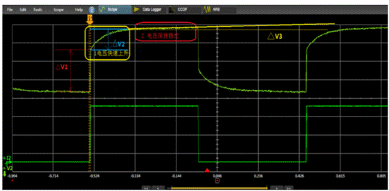 瞬態(tài)響應(yīng)是指電源在負(fù)載電流突變時,電壓跌落和過沖的波形特征,評價指標(biāo)有響應(yīng)時間為電壓恢復(fù)到輸出值的持續(xù)時間,和過沖幅度百分比或絕對電壓值。
