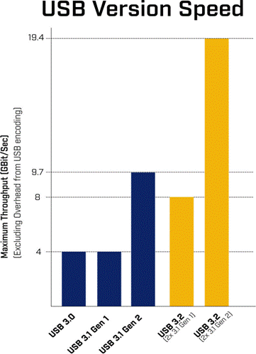 使用術語“USB 3.2”來表示第一代和第二代很可能會造成混淆。  “經(jīng) USB 3.2 認證”設備可理解為支持在超過 1 米的電纜上實現(xiàn) 20 Gbit/s 傳輸速度,或支持在超過 5 米的電纜上實現(xiàn) 8 Gbit/s 傳輸速度。我們將繼續(xù)監(jiān)控并報告此標準及其命名的進展。