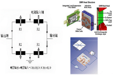 巨磁電阻傳感器將四個巨磁電阻構(gòu)成惠斯登電橋結(jié)構(gòu),該結(jié)構(gòu)可以減少外界環(huán)境對傳感器輸出穩(wěn)定性的影響,增加傳感器靈敏度。