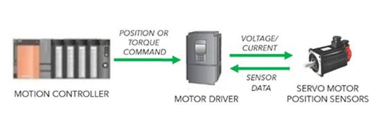 • 電機驅(qū)動器,將運動控制器的控制命令(通常是速度或扭矩信號)轉(zhuǎn)換為更高功率電壓或電流信號來驅(qū)動電機