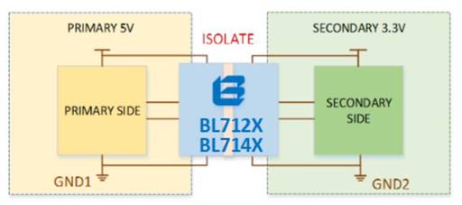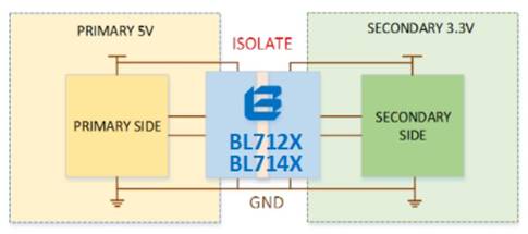1. BL714X在隔離類多電源域電平轉(zhuǎn)換應(yīng)用