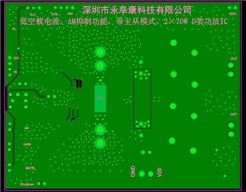 - 主從模式可編程控制,可實現無限級聯(lián)功率輸出,滿足2.1、4.0、5.1等多聲道應用;