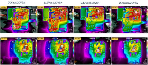 圖6:100 W USB PD適配器參考設(shè)計熱成像