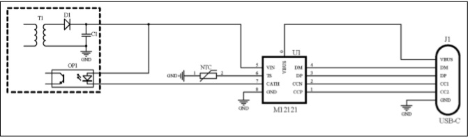 M12121是一款支持PD3.1的單口全兼容快充協議IC,集成了微處理器、USB Type-C接口、快充協議控制器,支持DFP/Source 和UFP/Sink功能,并集成了電源路徑MOS和高精度采樣電阻。其 CATH 管腳用于連接前級DC-DC的反饋節(jié)點或驅動AC-DC的反饋光耦。僅需極少的元件,即可組成高性能的充放電解決方案。 |