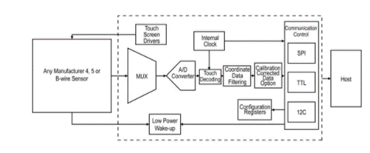 串行外圍設(shè)備的范圍一直延伸到用戶界面或人機界面 (HMI) 應(yīng)用程序。例如,Microchip 提供AR1000 觸摸屏控制器(圖 3)與 SPI 和 I?C 兼容。串行接口將 MCU 鏈接到控制器。AR1000 可連接來自多家供應(yīng)商的四線、五線和八線觸摸屏傳感器(圖 3)。IC 通過串行接口直接向 MCU 提供數(shù)字坐標。