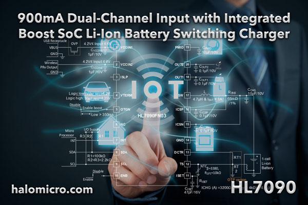 HL7090 具有雙通道輸入與集成升壓功能的900mA鋰電池充電SoC芯片