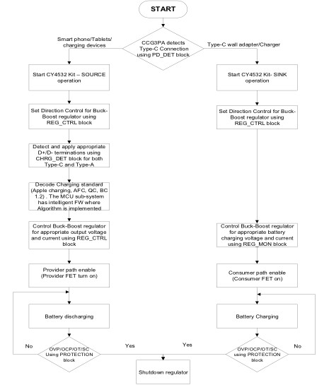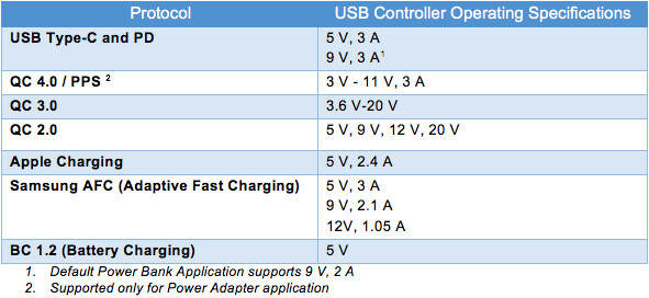 如今,可以使用專為滿足移動電源和電源適配器應用要求而設計的 Type-C 控制器。例如,賽普拉斯半導體的 EZ-PD CCG3PA 控制器支持具有可編程電源 (PPS) 模式的 USB PD 3.0 規(guī)范。該控制器還支持傳統(tǒng)的 BC1.2 和各種專有充電方法,如高通快速充電(QC)、三星自適應快速充電 (AFC) 和 Apple 充電。
