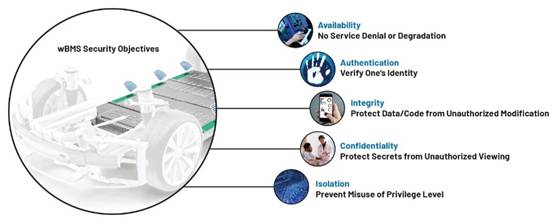 只有在電動(dòng)汽車電池的全生命周期內(nèi)確保從器件到網(wǎng)絡(luò)的安全性,才能實(shí)現(xiàn)wBMS技術(shù)的全部?jī)?yōu)勢(shì)。考慮到這一點(diǎn),安全性要求采取系統(tǒng)級(jí)設(shè)計(jì)理念,涵蓋過(guò)程和產(chǎn)品。