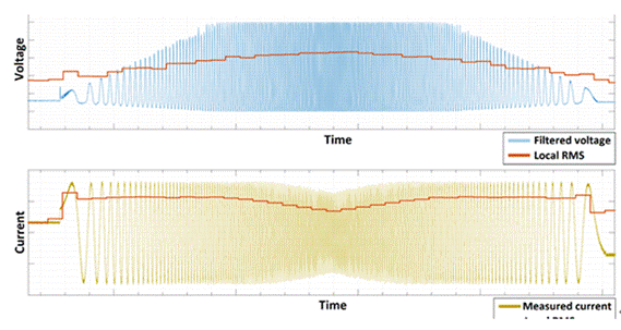 兩幅圖以“Local RMS”表示電壓和電流,這或多或少是平均有效值。