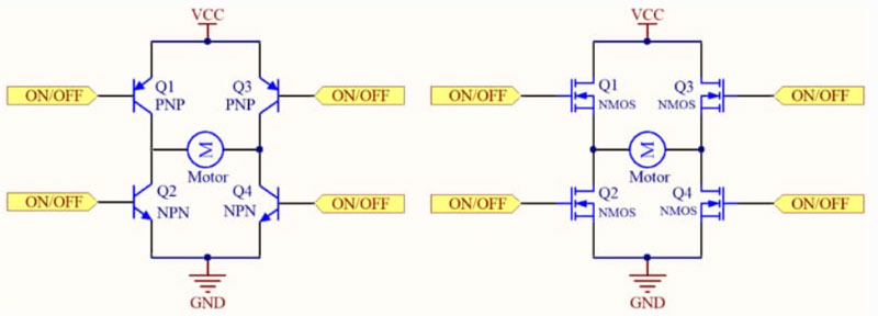 圖2:H橋電機(jī)驅(qū)動(dòng)電路(圖源:硬件攻城獅博文)