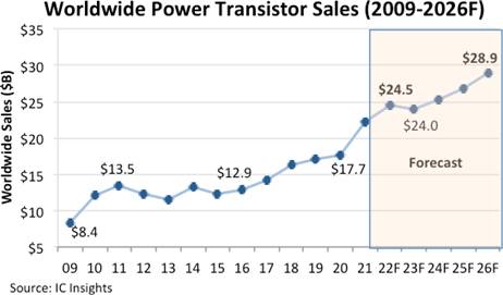 2022年全球功率半導(dǎo)體銷售額同比增長(zhǎng)11%