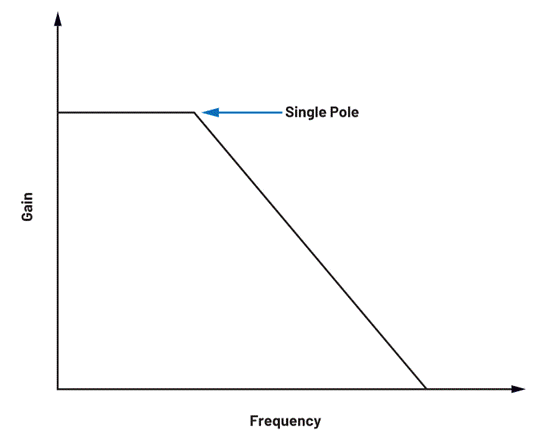 圖2. 通過電流模式控制實現(xiàn)的簡化控制環(huán)路補償,采用波特圖顯示,功率級中僅有一個單極點。