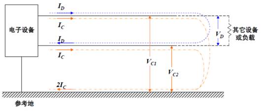 3. 器件上的電路走線與大地之間有電位差,這樣電路走線上會(huì)產(chǎn)生共模干擾電流。