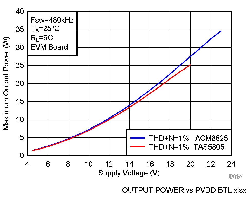 ACM8628 2×41W、立體聲 (6Ω, 24V, THD+N = 1%) ; 2×33W, 立體聲 (4Ω, 18V, THD+N = 1%) ; 1×82W, 單通道 (3Ω, 24V, THD+N = 1%) TAS5805/ACM8625/ACM8622 TSSOP-28 4.5V-26.4V 2×41W立體聲 /1×82W單通道數(shù)字輸入功放、內(nèi)置DSP小音量低頻增強等算法