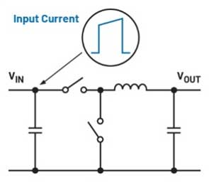 圖2.降壓轉(zhuǎn)換器產(chǎn)生輸入側(cè)脈沖電流