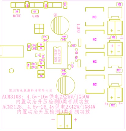 深圳市永阜康科技有限公司現(xiàn)在大力推廣具備動態(tài)調(diào)整升壓CLASS H功能的D類功放芯片系列-ACM31XX系列,功率覆蓋單聲道10W-100W、雙聲道2*10W-2*50W,供電滿足1-5串鋰電池及鉛酸電池的應(yīng)用,能夠保證足夠功率輸出及音質(zhì)體驗的前提下,極大延長電池的續(xù)航時間。