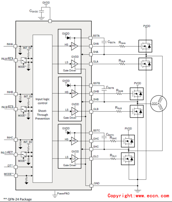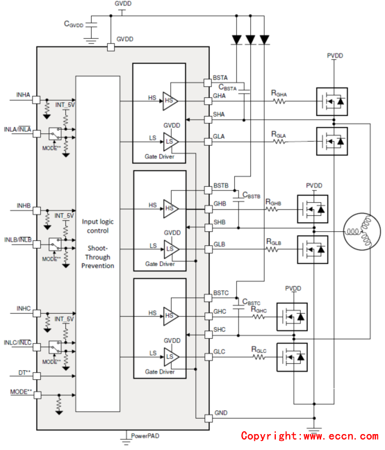 圖2. DRV8300N簡(jiǎn)化電路圖