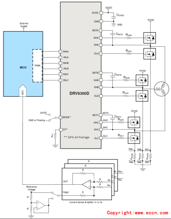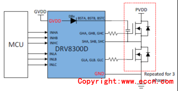 圖1. DRV8300D簡(jiǎn)化電路圖