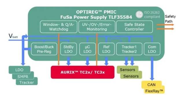 對于PMIC(電源管理集成電路)大家都不陌生,幾乎所有用電設(shè)備都需要用到它,電動汽車當(dāng)然也不例外。我們上面已經(jīng)提到,在快速充電場景下,電池系統(tǒng)的危險系數(shù)會更高,此時BMS的安全作用便會更加凸顯。那么,下面我們?yōu)榇蠹彝扑]一款器件來幫助BMS提升安全性能,該器件在貿(mào)澤電子上的料號為TLF35584QVHS2XUMA1,來自制造商英飛凌。