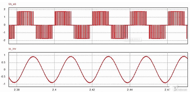 (2)弦波控制:使用的是SVPWM波,輸出的是3相正弦波電壓,電機相電流為正弦波電流?梢哉J為在一個電氣周期內(nèi)進行了多次的連續(xù)變化換向,無換相電流突變。顯然,正弦波控制相比方波控制,其轉(zhuǎn)矩波動較小,電流諧波少,控制起來感覺比較“細膩”。