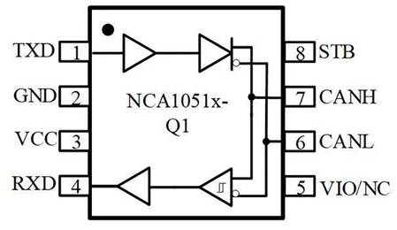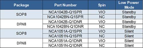 NCA1042B-Q1和NCA1051A-Q1 CAN收發(fā)器芯片邏輯I/O工作電平在2.8~5.5V范圍內(nèi),可支持3.3V和5V MCU 的I/O電平。