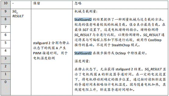 *DRV_STATUS 0X6F: StallGuard2值和驅(qū)動(dòng)錯(cuò)誤標(biāo)志0-9bit SG_RESULT(負(fù)載值) 用于監(jiān)測(cè)電機(jī)所剩的扭力。