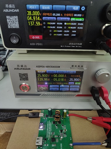 3-8節(jié)升降壓型雙向快充140W鋰電充放電芯片M12269,集成PD3.1/QC3.0協(xié)議,最大輸入/輸出功率140我,應(yīng)用于7節(jié)鋰電移動(dòng)電源雙向快充性能測(cè)試