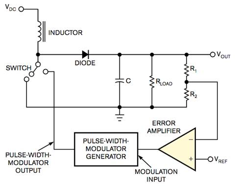圖 1 升壓開(kāi)關(guān)穩(wěn)壓器中的輸出電壓高于輸入電壓。升壓開(kāi)關(guān)穩(wěn)壓器以 CCM(連續(xù)導(dǎo)通模式)或 DCM(斷續(xù)導(dǎo)通模式)運(yùn)行。