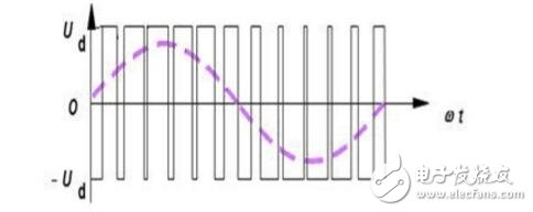 疊加在MOS管的直流電壓可以通過PWM開關(guān)控制來等效成正弦電壓,由于中性點(diǎn)為0,因此電機(jī)的相電壓也為正弦,從而使得電機(jī)相線電流也成正弦變化規(guī)則,消除了轉(zhuǎn)矩波動(dòng)。根據(jù)面積等效原理,正弦波還可以等效成PWM波。