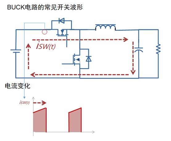 電源輸入電容與開關(guān)環(huán)路形成一個電流環(huán)。這個電流環(huán)路的變化幅度大,Iout的幅度。頻率是開關(guān)頻率。DCDC芯片開關(guān)過程中產(chǎn)生,這個電流環(huán)產(chǎn)生的電流的變化,包含了較快的di/dt。