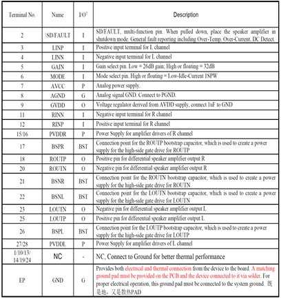 說明三:雙聲道功放芯片系列,支持PBTL模式驅(qū)動(dòng)單聲道;