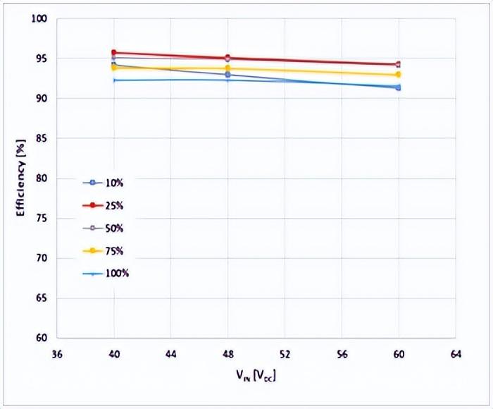 圖5:輸入電壓對(duì)能效和負(fù)載變化