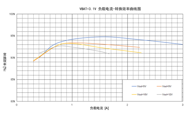MERCHIP水芯電子的M12219巔峰效率極高。從負載電流—轉換效率曲線圖上來看,M12219的效率最高可達94.74%,高于友商芯片峰值7%左右。
